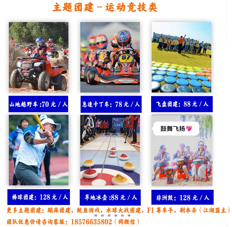 以下团建游玩项目可以自由组合,以下已经按最优线路组合搭配好的线路方案,可供参考