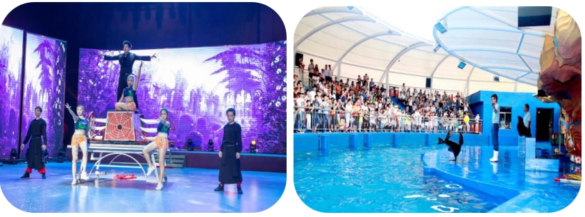 【快活大舞台】观赏惊险刺激的高空杂技、大型的魔术、国粹变脸、歌舞等精彩文艺表演,每个表演都会让你拍案叫绝,冲击视听别样体验。同学们可以了解少数名族的特色及“国粹”的唯一特殊性,为“非物质文化遗产”的传承接力。