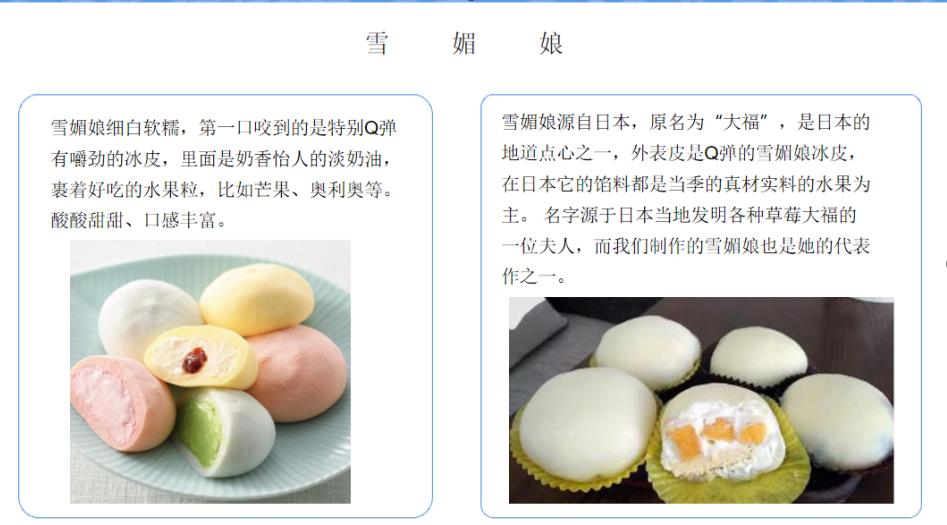 雪媚娘源自日本,原名为“大福”,是日本的地道点心之一,外表皮是Q弹的雪媚娘冰皮,在日本它的馅料都是当季的真材实料的水果为主。 名字源于日本当地发明各种草莓大福的一位夫人,而我们制作的雪媚娘也是她的代表作之一。西茄雪媚娘,沿用轻施手粉风格,内馅采用鲜果,是传统雪媚娘的最重要流派