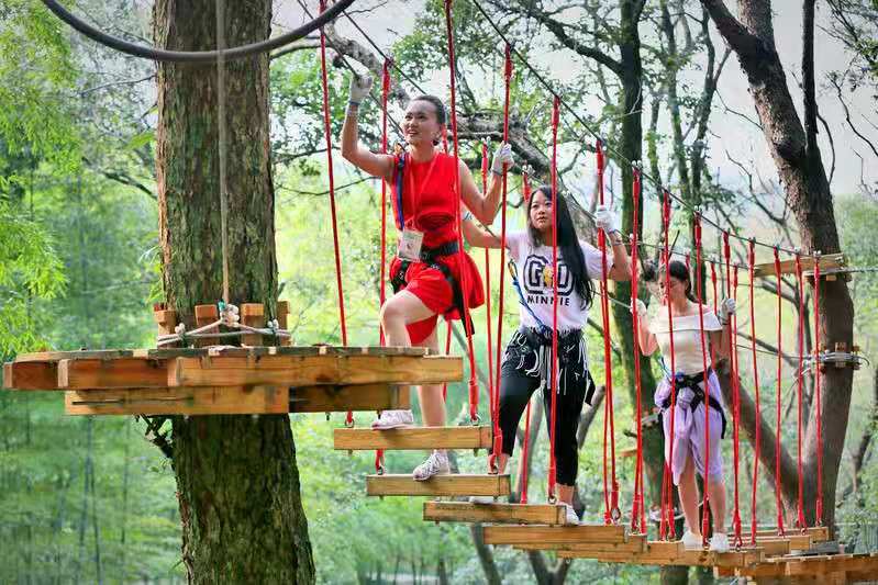 【丛林穿越】丛林探险是一种新兴的生态的高空拓展项目,也是一项充满乐趣,适合不同年龄阶段的人们,通过丛林探险项目,可以锻炼人们的平衡能力,耐力等,也为久居城市的人们模拟了一个野外冒险空间,人们能从中学习到野外逃生、野外生存的技巧。