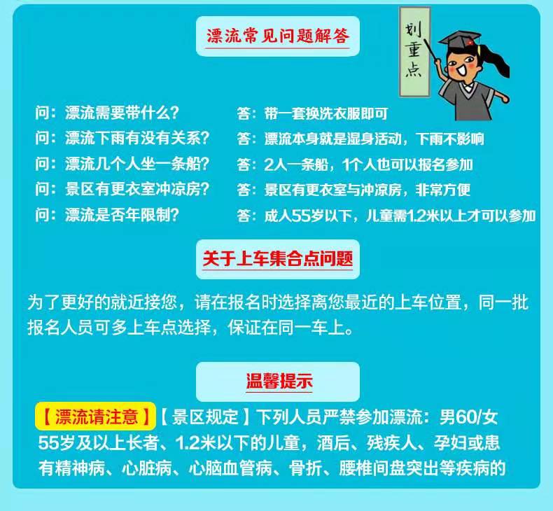 13:30-17:00参加2007年国际漂流决赛赛场【古龙峡飞龙全程漂流】(免费升级全程漂)(全程约一个半小时),全长5.2公里,落差达236米,共137处,创下了广东单项漂流长度最长、回旋最多、落差最大三项纪录,被誉为中国漂流的巅峰之作。更被国家体育局水上运动中心指定为国际漂流大赛专用赛道。河道奇石飞舟,在峡谷中穿石绕壁;凌波逐浪,领略博浪飞舟的激越,高歌击桨的豪放;一路急流勇退,高潮迭起。由于该赛道挑战性强、安全体系健全,目前还作为国际极限运动联合会的训练基地,不定期进行专业选手的培训和竞技表演,成为中国自然生态漂流的全新亮点。参加【古龙九瀑】(赠送项目,未参与无退费)“飞流直下三千尺,疑似银河落九天。”李白一首《望庐山瀑布》上千年来引发了多少人观赏瀑布,体验感受今古长如白练飞,一条界破青山色的壮观景色的欲望。古龙九瀑共有九个瀑布,总长度610米,落差263米,是国内落差最大的阶梯瀑布群,也是广东最大的瀑布群。古龙峡的古龙九瀑起点位于放漂点,总长度610米,落差263米,终年水流充沛,是国内落差最大的阶梯瀑布群,也是广东省规模最大的叠瀑群。