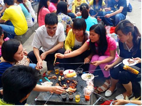 烧烤菜单(每人一份)包括:(鸡腿1个、鸡翅1个、火腿1条、鱼丸2个、猪肉丸2个、脆皮肠1根、馒头2个、方面包3片、玉米1条、豆干1、韭菜50克、辣椒1个(会根据时节调整蔬菜类产品)