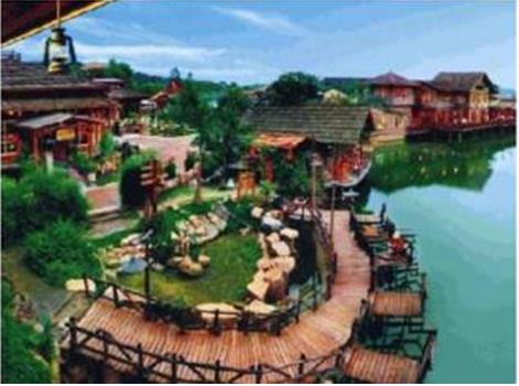 - 位于观澜镇,毗邻世界著名的观澜高尔夫球会,是一座现代都市人的世外桃源,依山傍水,浑然天成,富有真趣。园区交通便利,离深圳国际机场、火车站仅40分钟车程。是一家集餐饮、客房、温泉、康体娱乐于一体的生态旅游景区。山水画坊,国画展馆或依山傍水,曲径通幽处,豁然见画馆;“画在景中展,人在画中游”,达到人、景、画三者融合一体,形成一幅和谐动感的立体山水画。踏进山水田园,展现在眼前的是一片秀美的世外桃源风光。清波荡漾的湖泊镶嵌在绿野之中,宛如少女的明眸脉脉含情。湖岸边垂柳依依,轻拂水面。水转筒车,吱吱呀呀吟唱着乡村古老的歌谣。放眼望去,青山叠翠,小桥流水,楼台亭榭错落,宛若陶渊明笔下“芳草鲜美,落樱缤纷”,有“良田美池桑竹之属”的桃源画境。