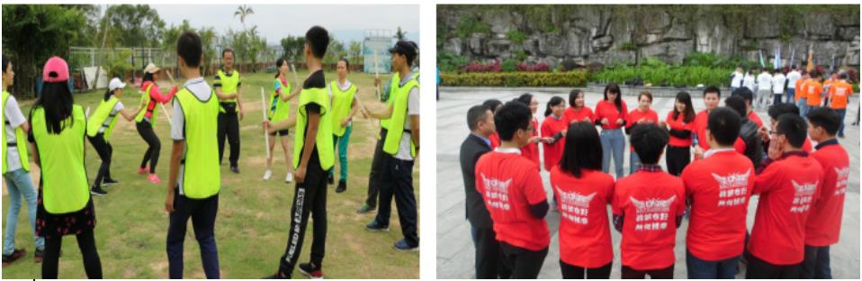 项目方式:六个参与性的活动分别为:疯狂列车、一柱擎天、移花接木、我们是最棒的团队、抛接水瓶、快速报数。