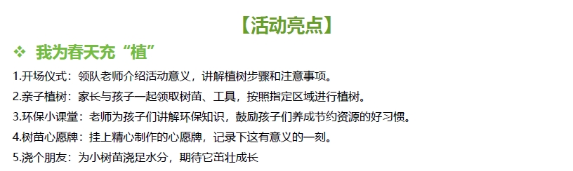 1) 让孩子们亲近自然,感受春天的气息和美好。