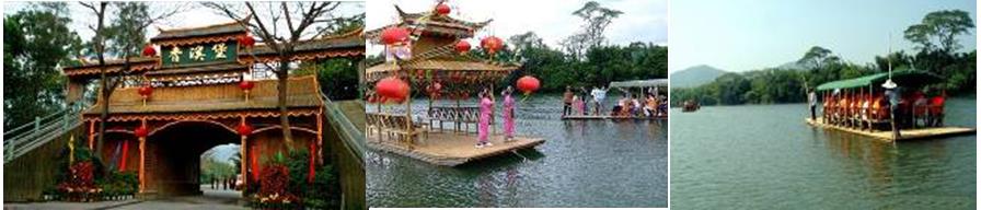 09:30 游览华南第一堡—【香溪古堡】(游览1.5小时);在清澈的香溪河上乘竹筏漂游,可以欣赏 沿河两岸美丽的景色,顺水到明未清初岭南文化建筑艺术遗风——“古码头”、“五宅古围”、“正街”、“廖氏宗祠”等古建筑群,以其久经苍桑的历史,深厚的文化积淀给人留下时光倒流的回味和联想空间,乘竹车走在乡村间。