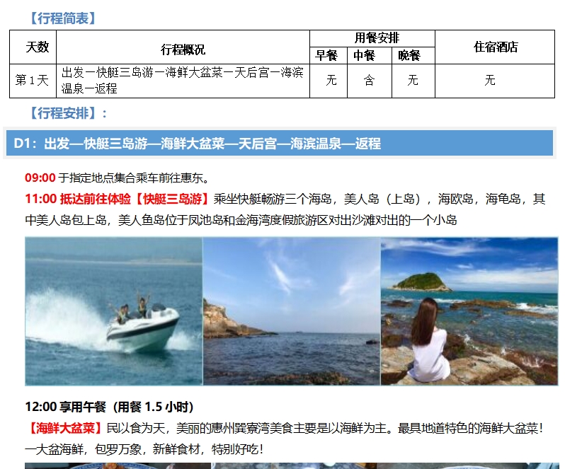 A9【海滨温泉】快艇三岛游+天后宫+海鲜大盆菜+海滨温泉一日游